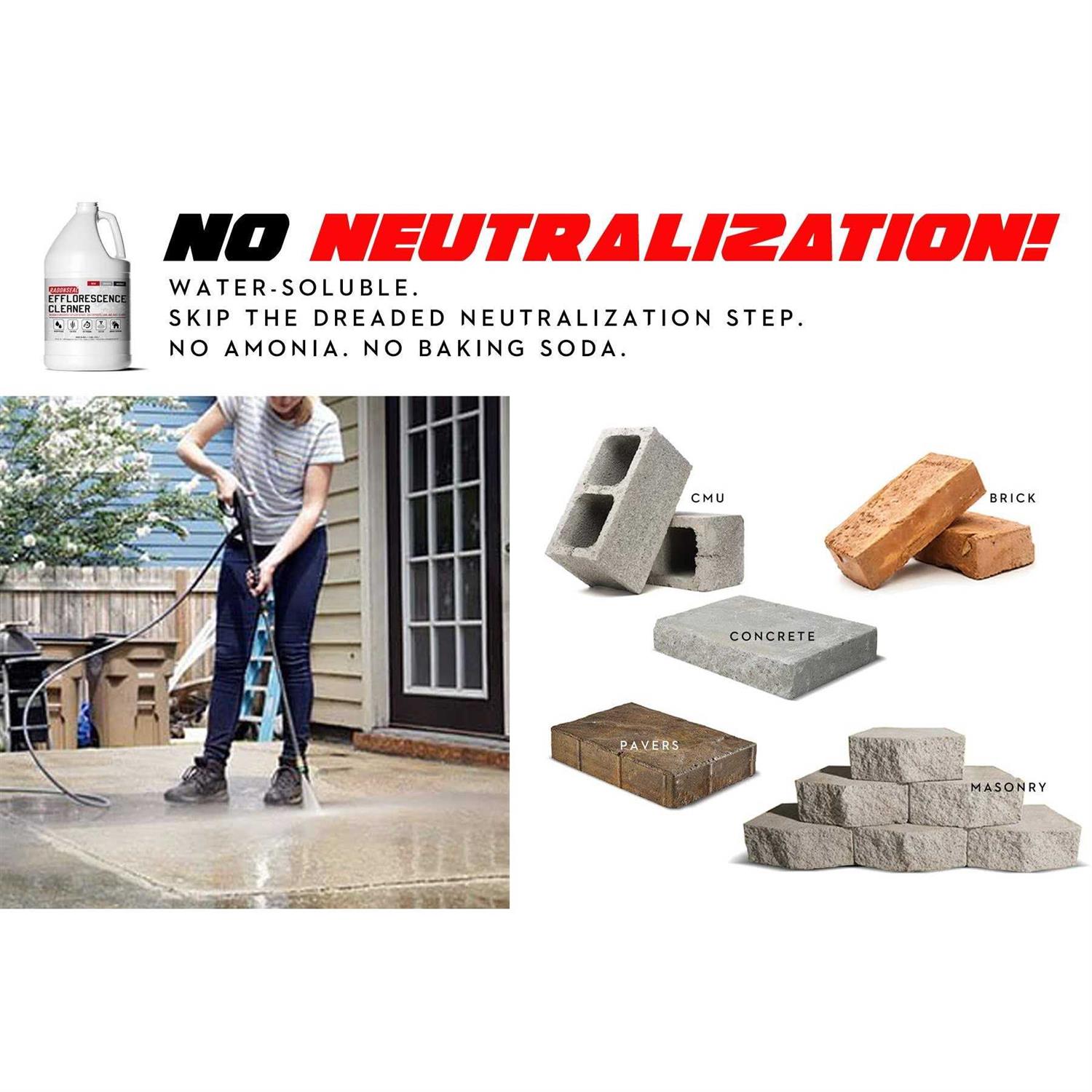 RadonSeal Efflorescence Remover Cleans Efflorescence Mortar Haze Lime Deposits And Rust Stains No Odor Safe For Use Indoors & Outdoors