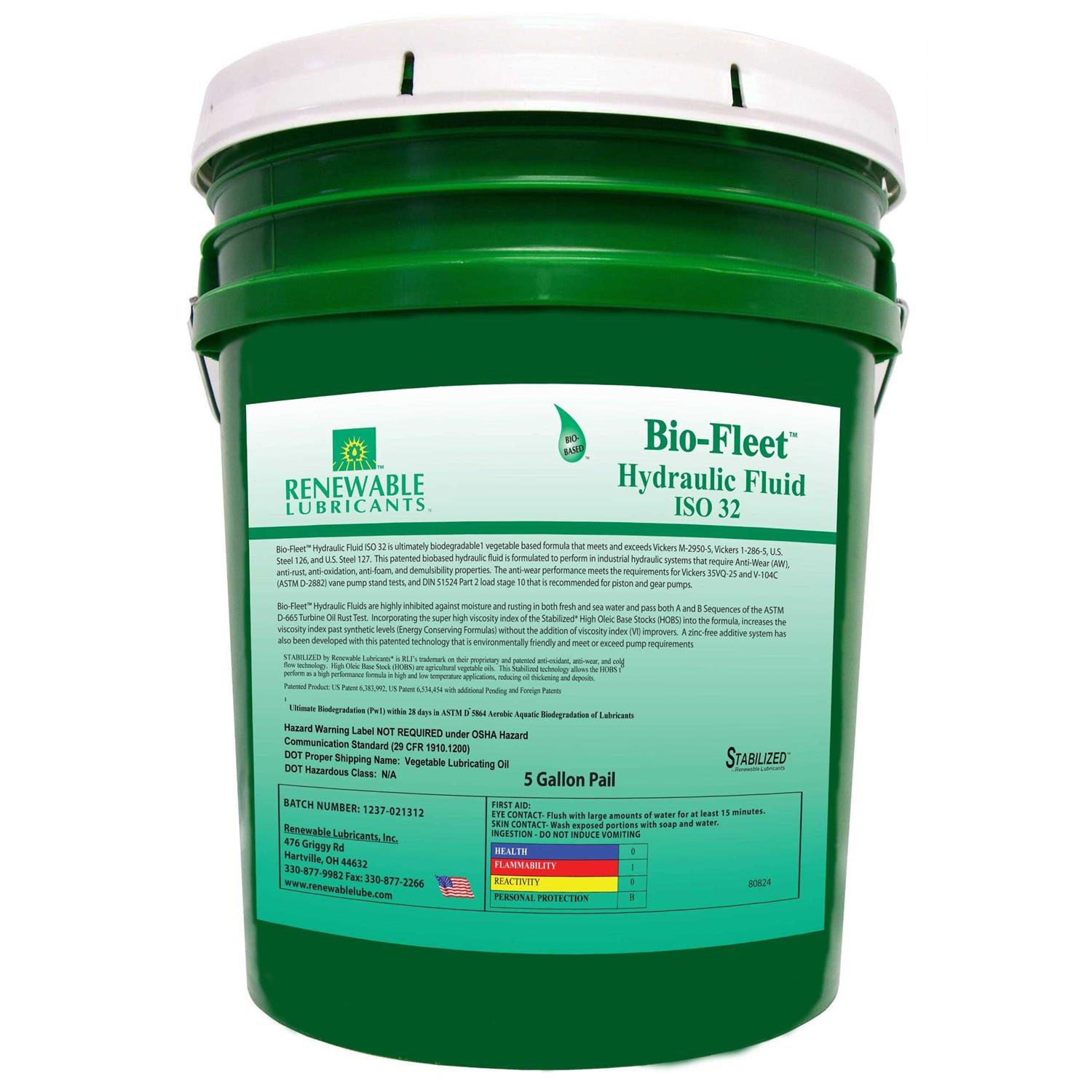 Renewable Lubricants Biodegradable Hydraulic Oil,5 Gal,ISO 32 80824