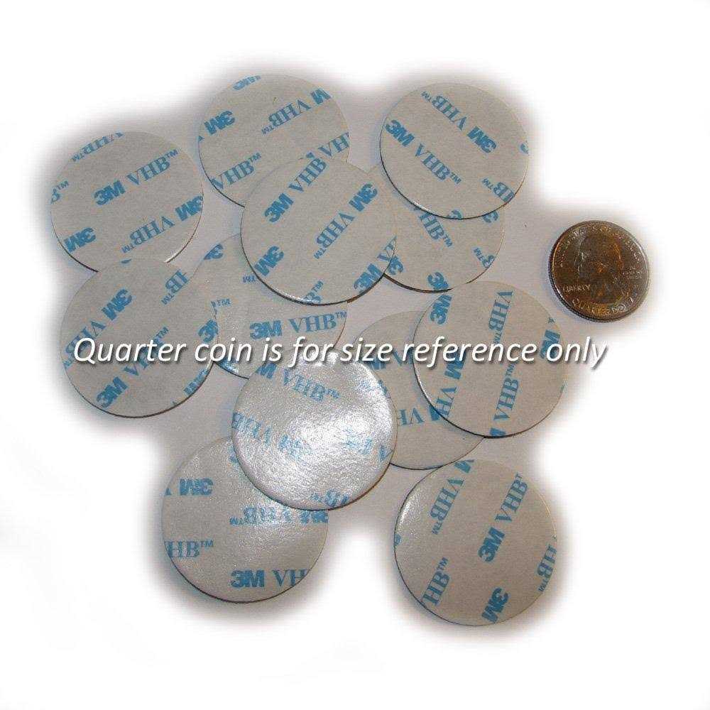 12 of VHB 3M Adhesive Double-Sided Circle Dots 1.38 Inch Diameter. Mounting bonding Items with Flat Smooth Surface
