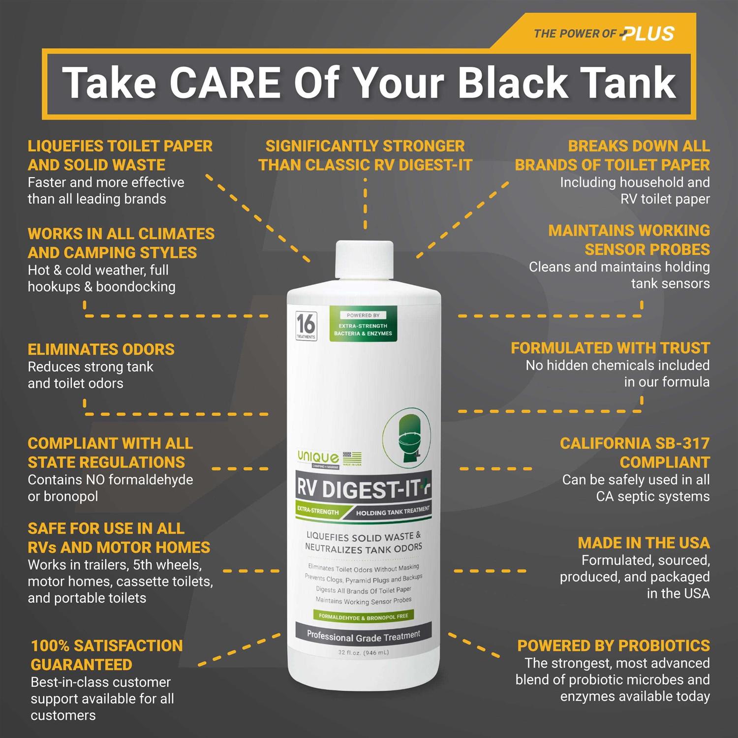 Unique RV Digest-It+ Extra-Strength Black Tank Treatment for RVs