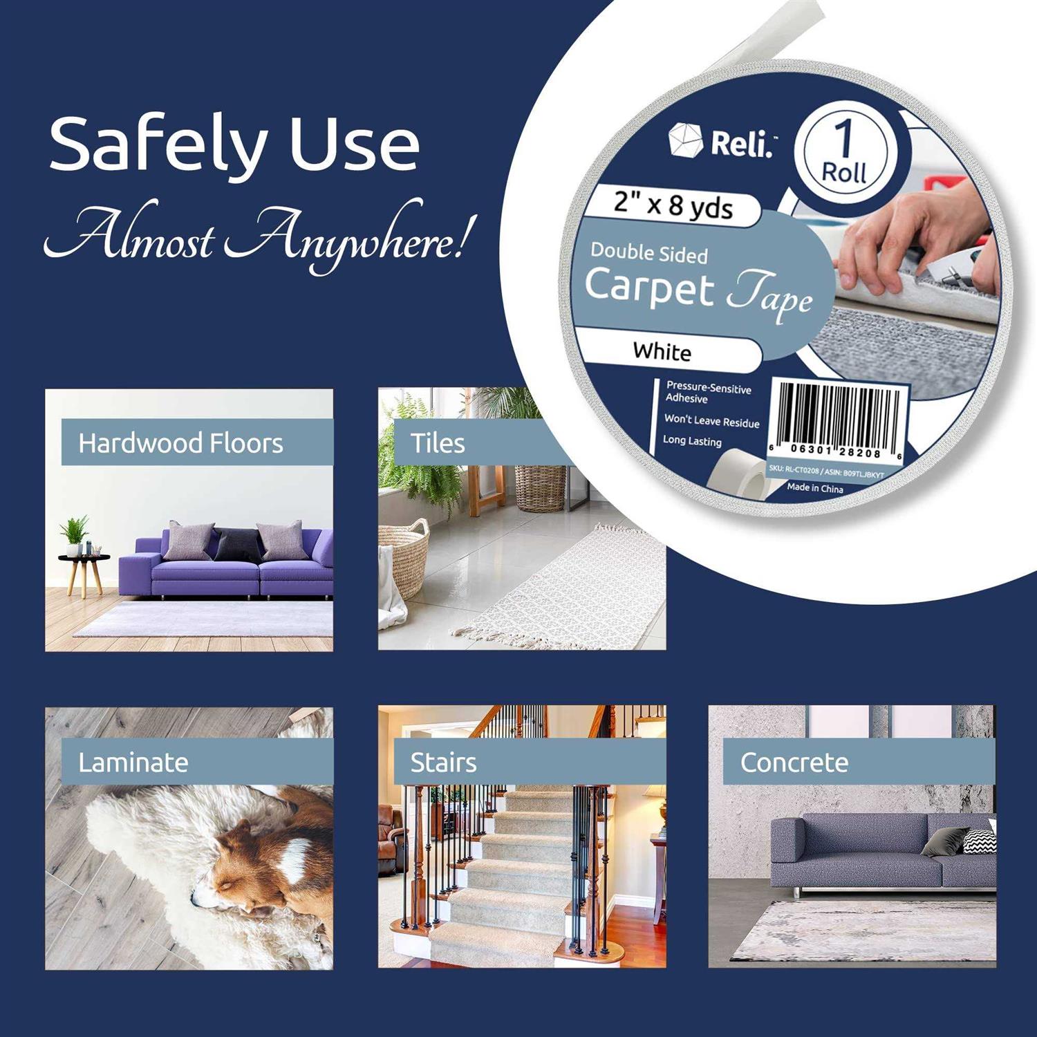 Reli. Carpet Tape 2 x 45 Yards Double Sided Carpet Tape for Hardwood Floors