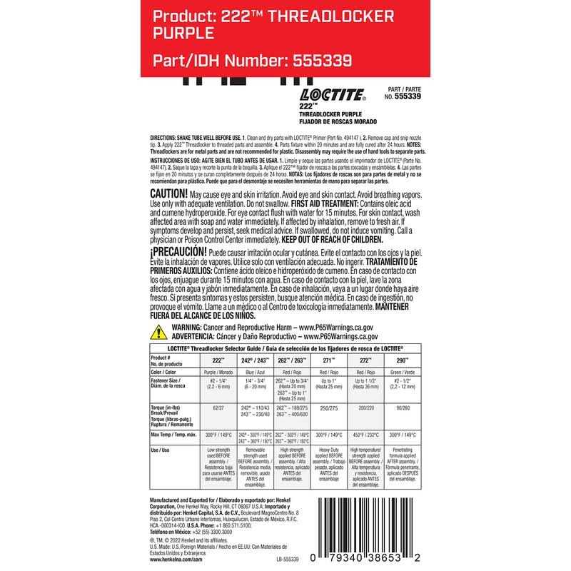 Loctite 222 Threadlocker Purple Low Strength