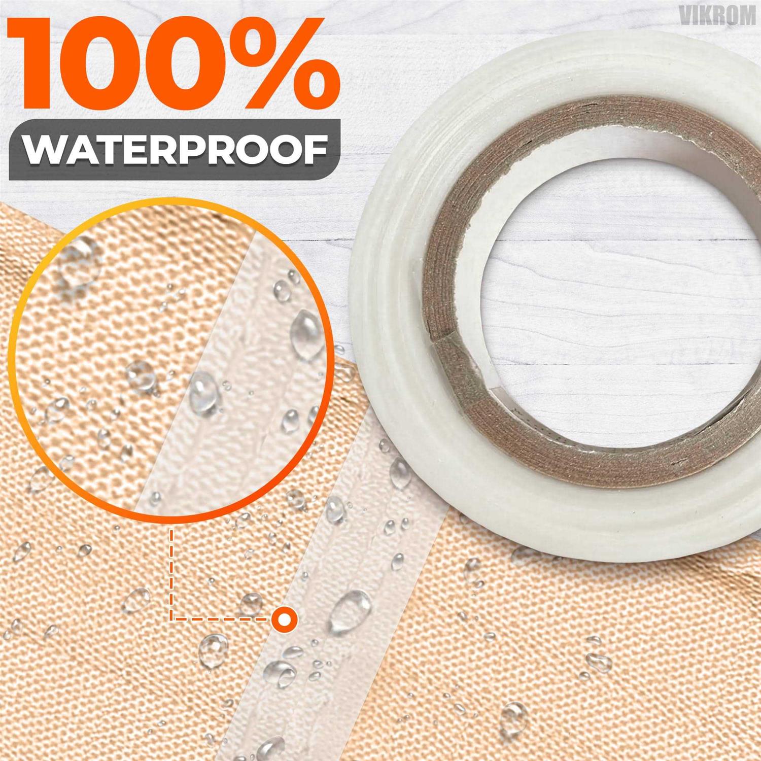VIKROM Waterproof Seam Tape for Fabric 1 Piece Tape Roll Fabric Repair Tape Sealing Iron Waterproof Tape