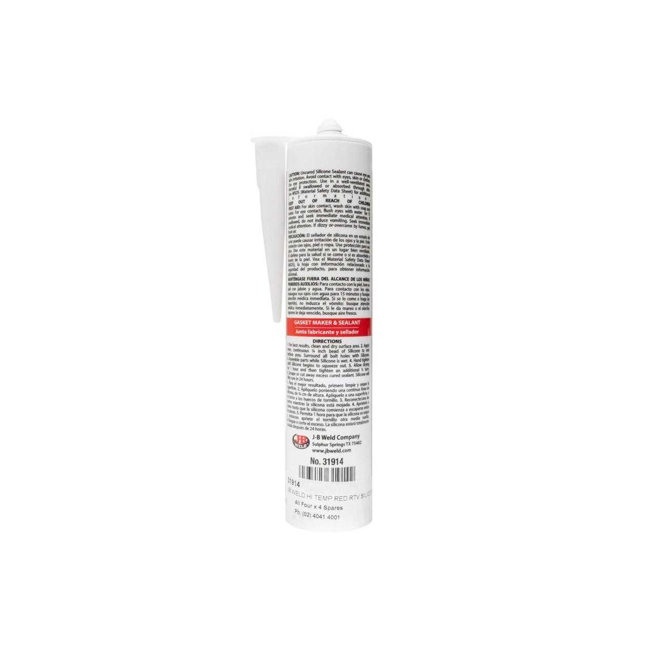 J-B Weld 31914 Red High Temperature Rtv Silicone Gasket Maker and Sealant