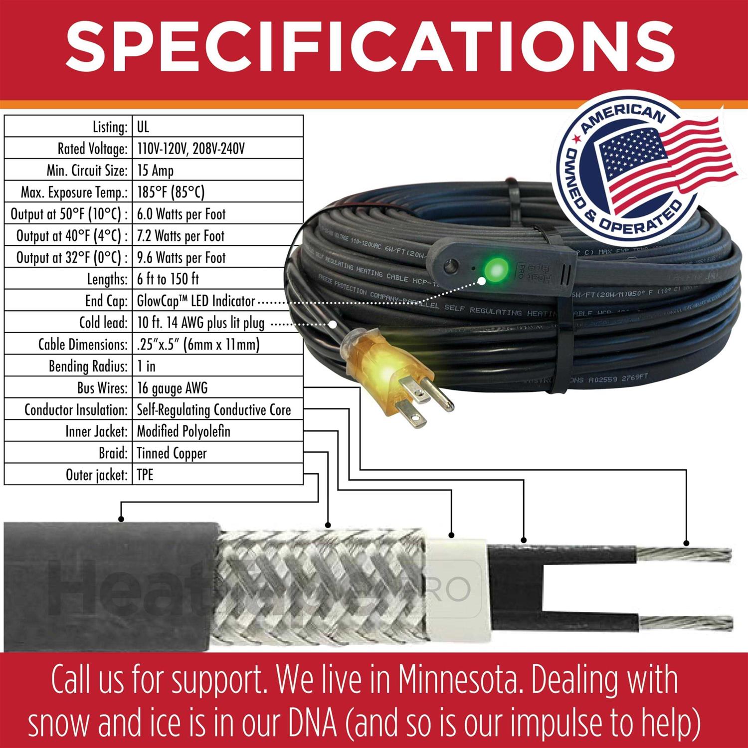 Radiant Solutions Heat Tape Pro Heating Cable For Roof & Gutter 120v