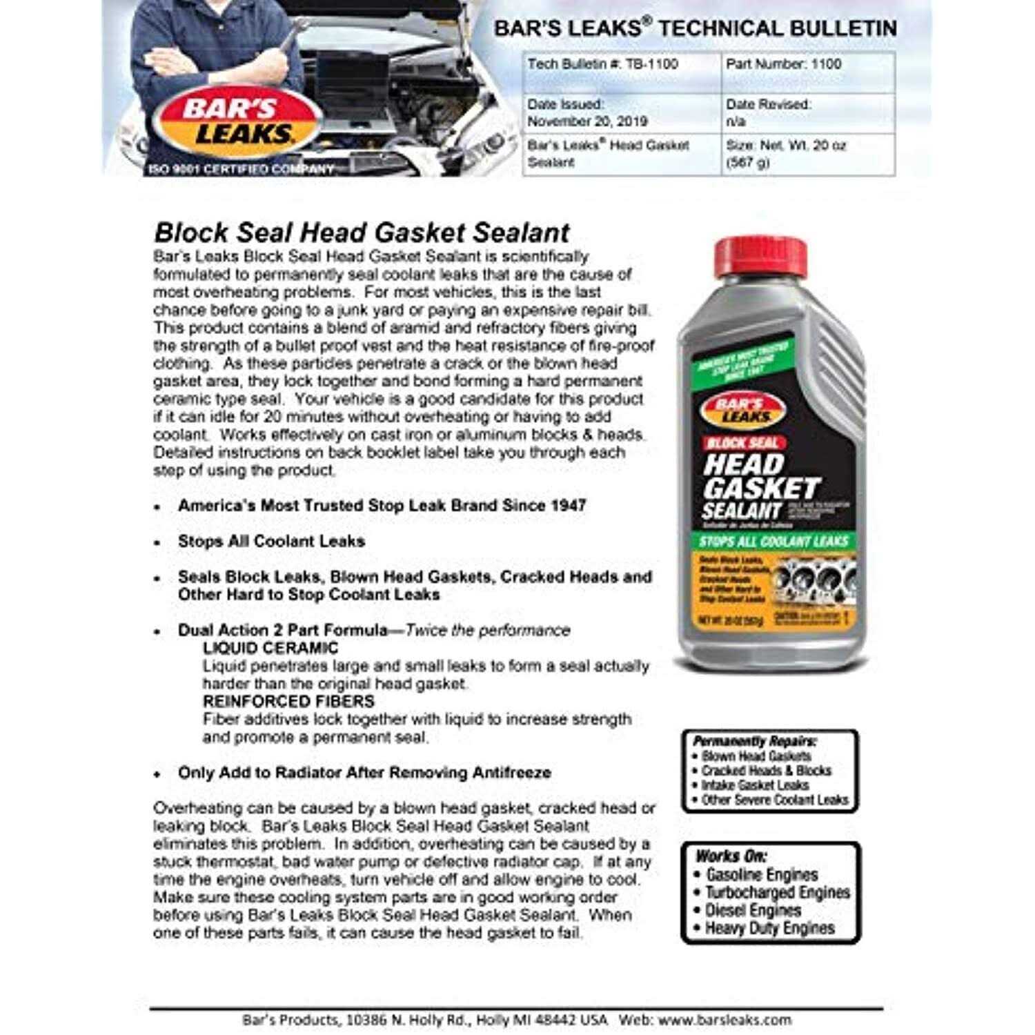Bar’s Leaks Head Gasket Repair 1100
