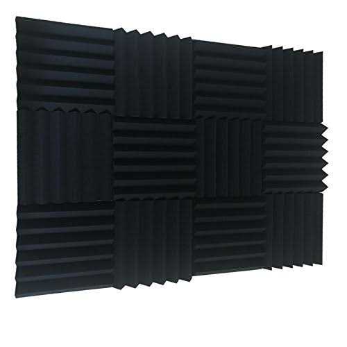 HPKL9999 48 Pack Black 12 X 12 X1 Acoustic Panels Studio Soundproofing Foam Wedge Tiles
