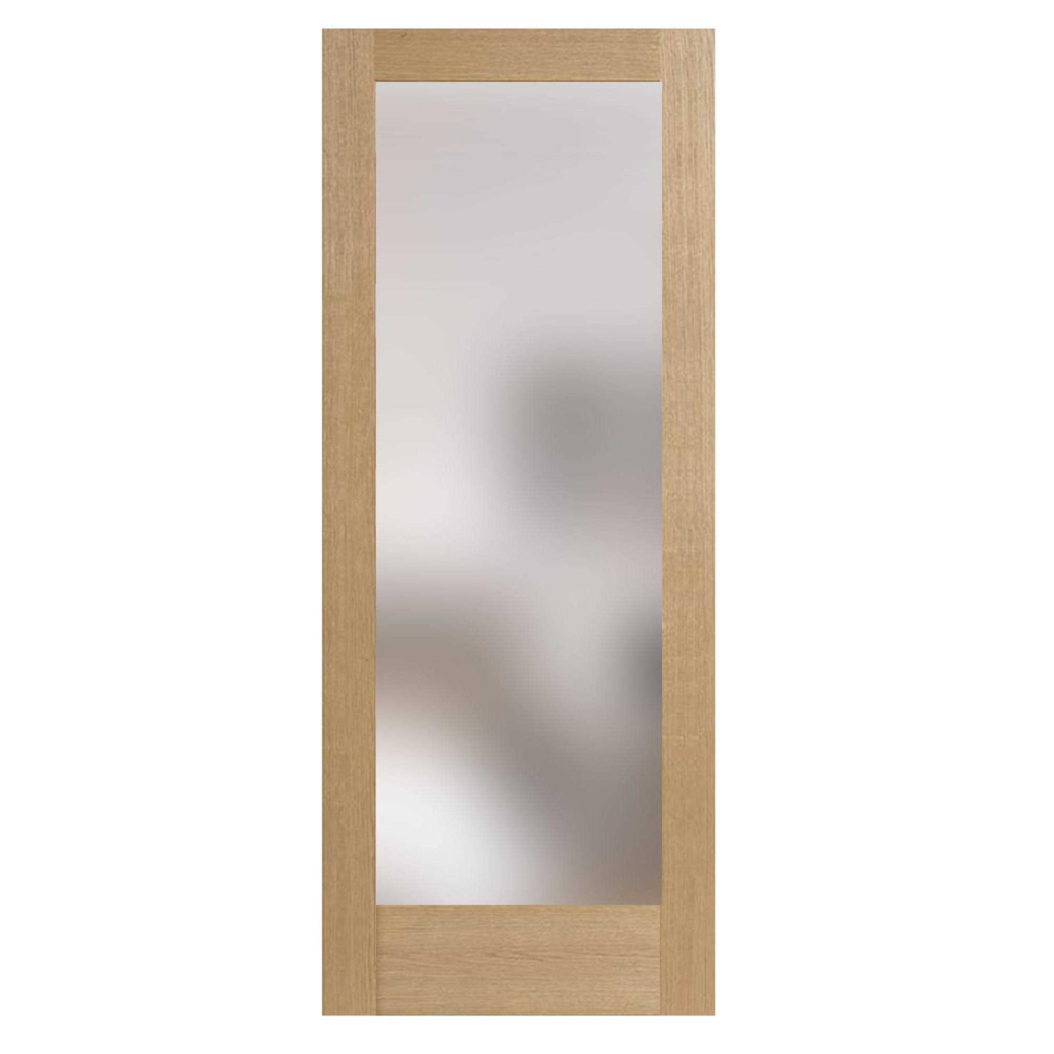 Stile Doors 1Lwo 80 inch White Oak 1 Lite Satin Etched Glass Solid Core Slab