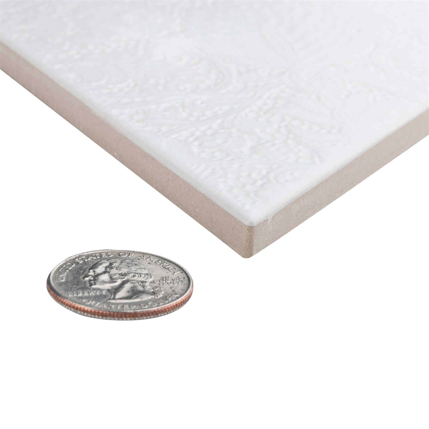 Bedrosians Vivace 4 inch x 4 inch Glossy Porcelain Motif Deco Tile in Rice