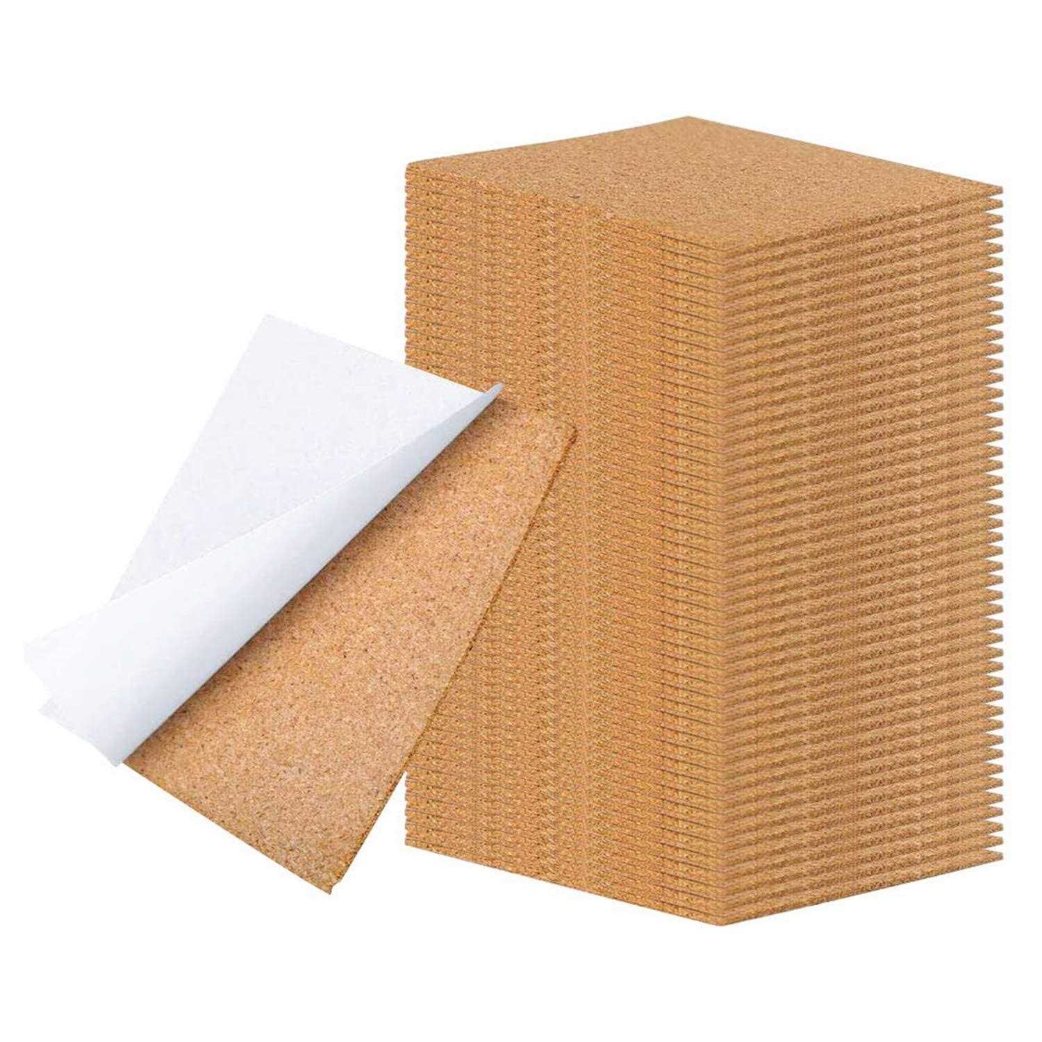 WANBAO 4 x 4 Inch Self Adhesive Cork Squares 100 MM Backing Cork Tiles Sheets for Coasters and DIY Crafts