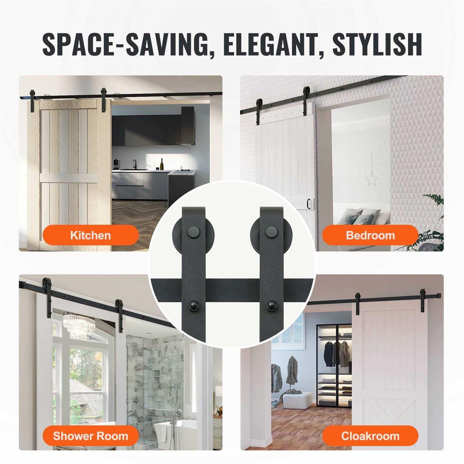 VEVOR 10FT Sliding Barn Door Hardware Kit, 330LBS Loading Heavy Duty Barn Door Track Kit for Single Door, Fit 4.6-5.2FT Wide and 1.3-1.8 Thick