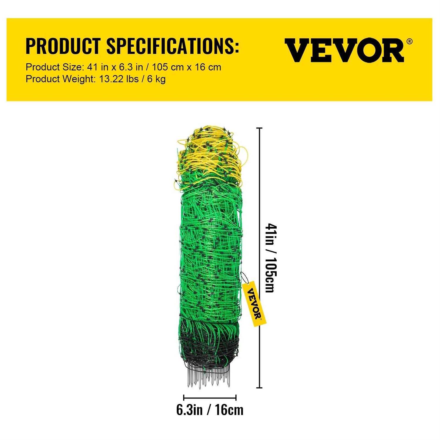 VEVOR Electric Fence Netting H x 164′ L PE Net Fencing with 14 Posts Double Spiked