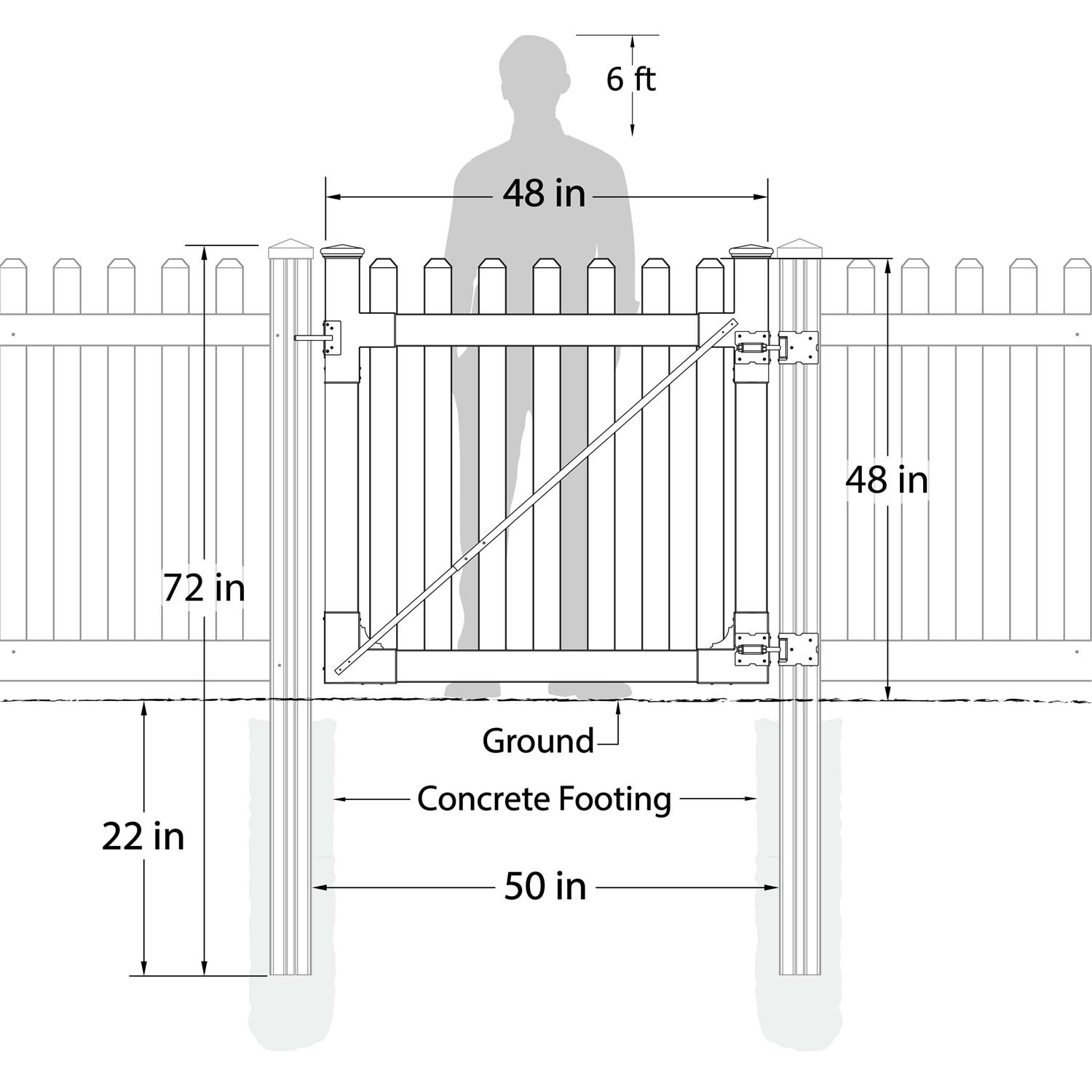 WamBam Fence 4 ft. x 4 ft. Premium Vinyl Classic Picket Fence Gate with Powder Coated Stainless Steel Hardware