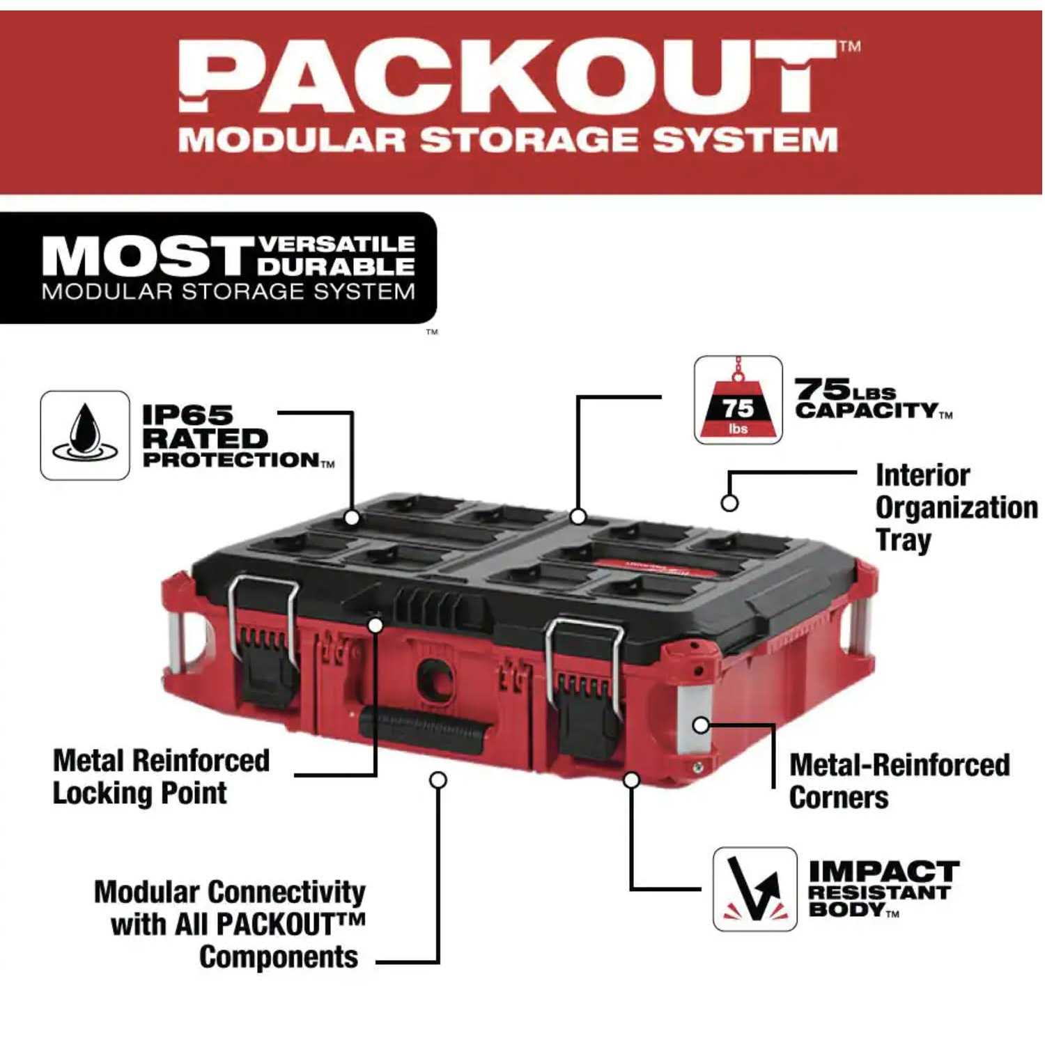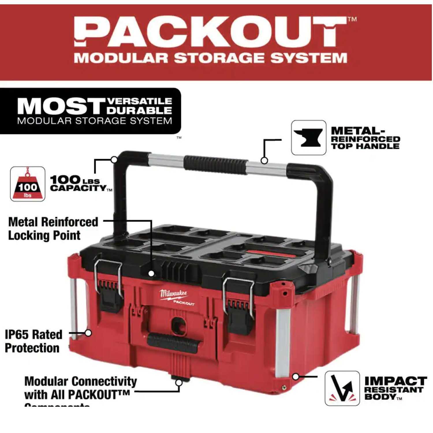 Milwaukee PACKOUT 22 in. Rolling Tool Box/22 in. Large Tool Box/18.6 in. Tool Storage Crate Bin