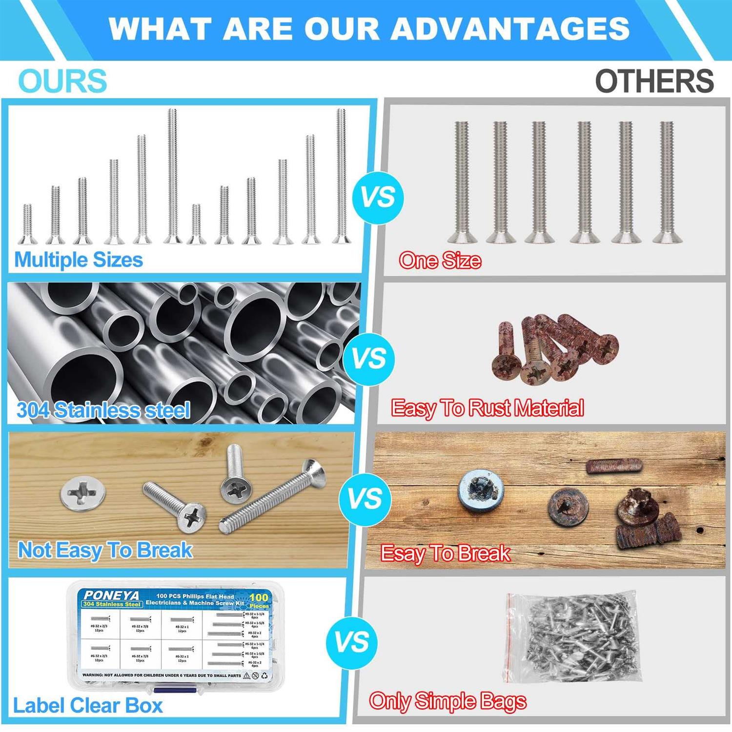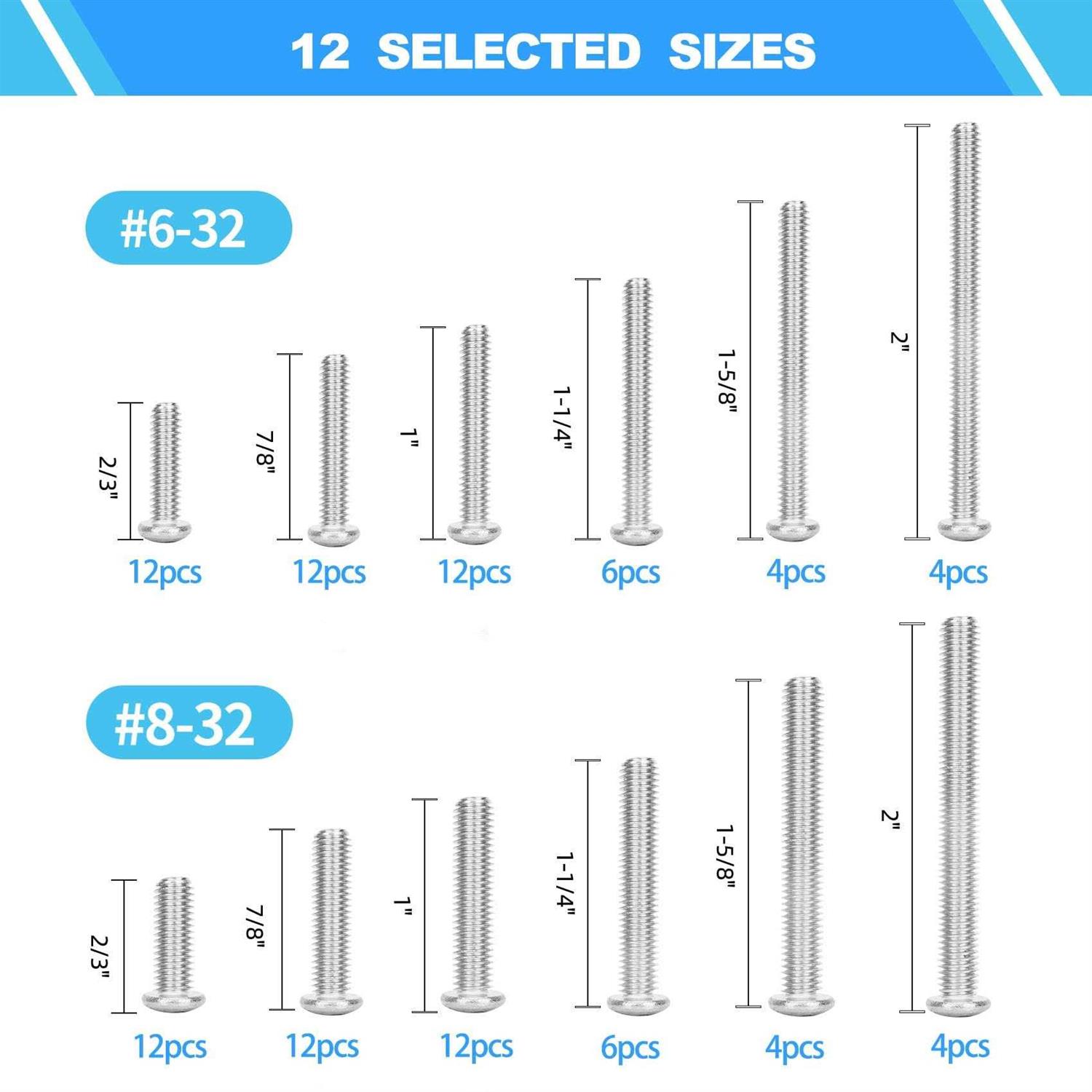 Machine Screws, 100 Pcs Phillips Pan Head Electricians Screw Kit #6-32#8-32 Thread 304 Stainless Steel Screws for Electrical Wall Plate Switch,