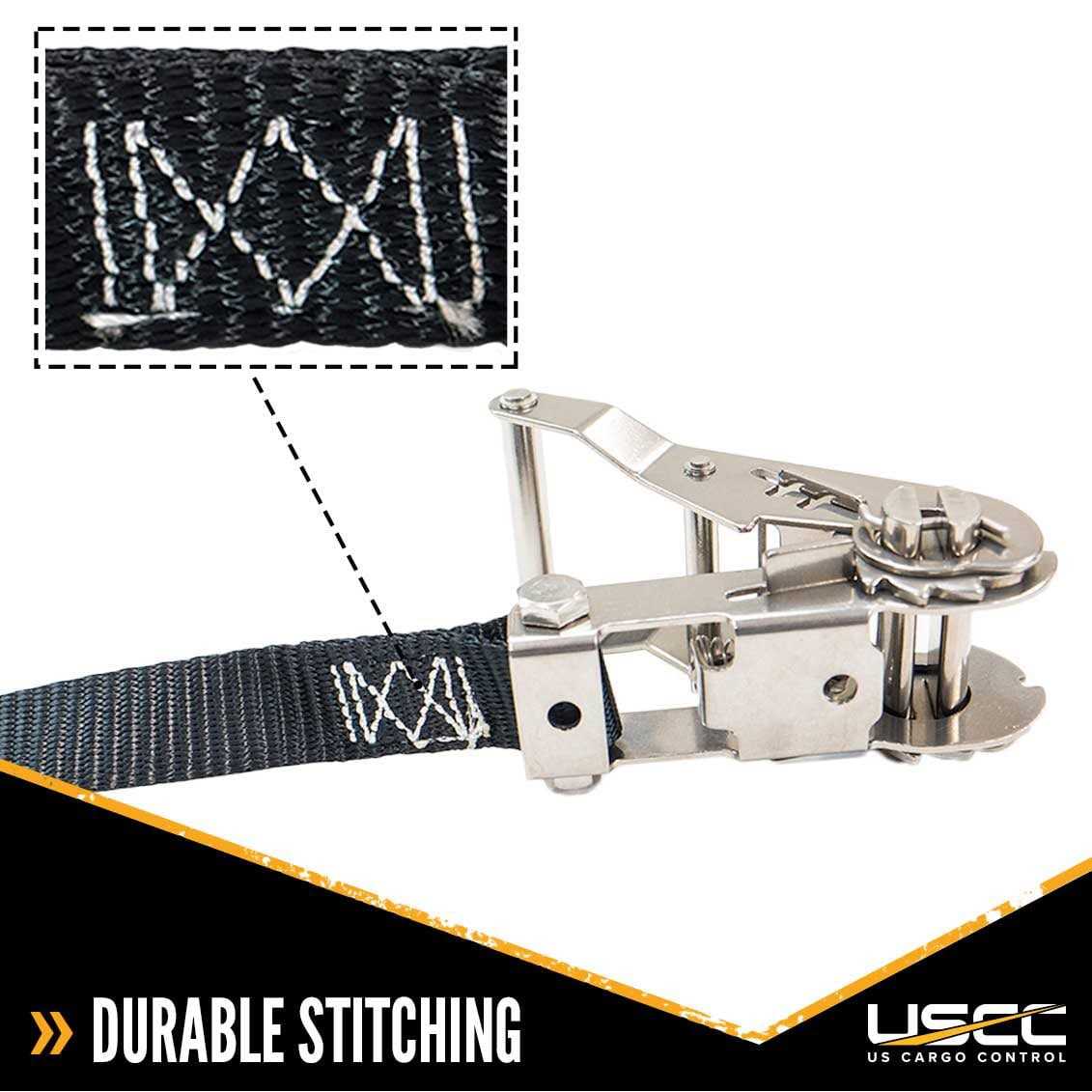Us Cargo Control 1 x 10′ Black Stainless Steel Thumb Ratchet Strap w