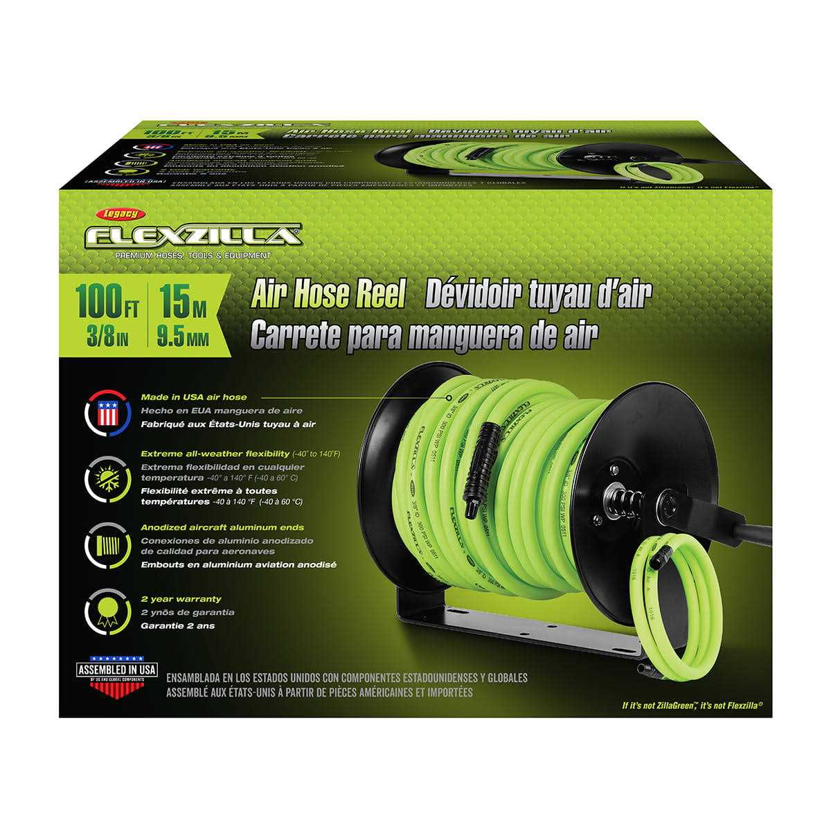 Flexzilla Manual Air Hose Reel Open Face Fixed Heavy-Duty 3/8 x 100 L8652FZ