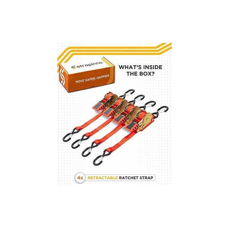 Strapinno Retractable Ratchet Straps 1 in x Secure Tie-downs with Rubber-coated Handles