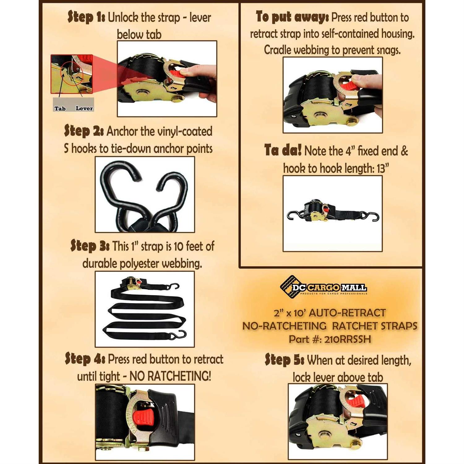 DC Cargo Mall 4 Auto Retract Ratchet Straps