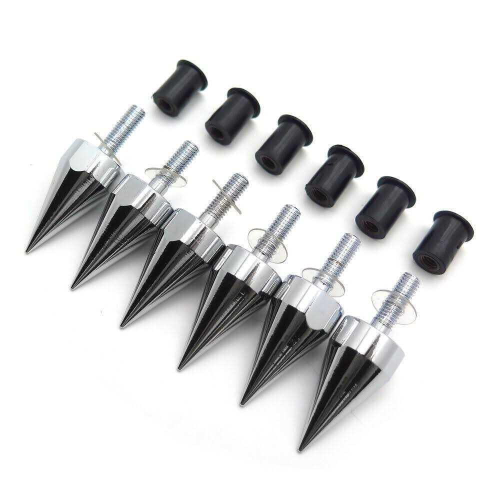 Httmt Mt218-002a Universal Chrome Motorcycle Spike Bolts with Mounting Parts Compatible with Windscreen Fairings License Plate