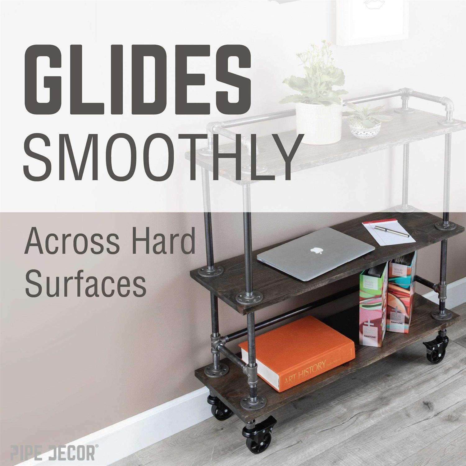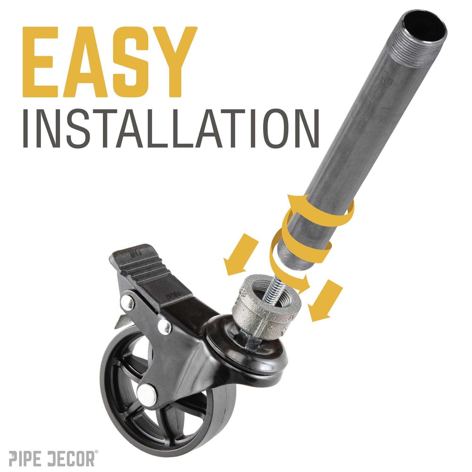PIPE DECOR Black Malleable Iron Cap Fitting with 3 in. Caster Wheel for Pipe Furniture