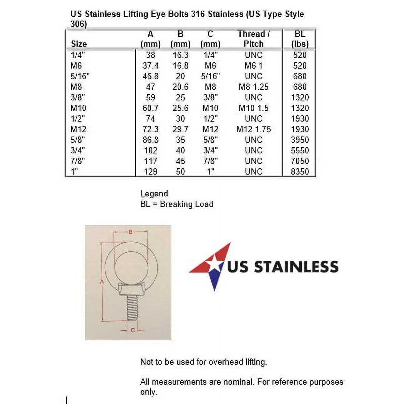 US Stainless Stainless Steel 316 3/8 inch Lifting Eye Bolt