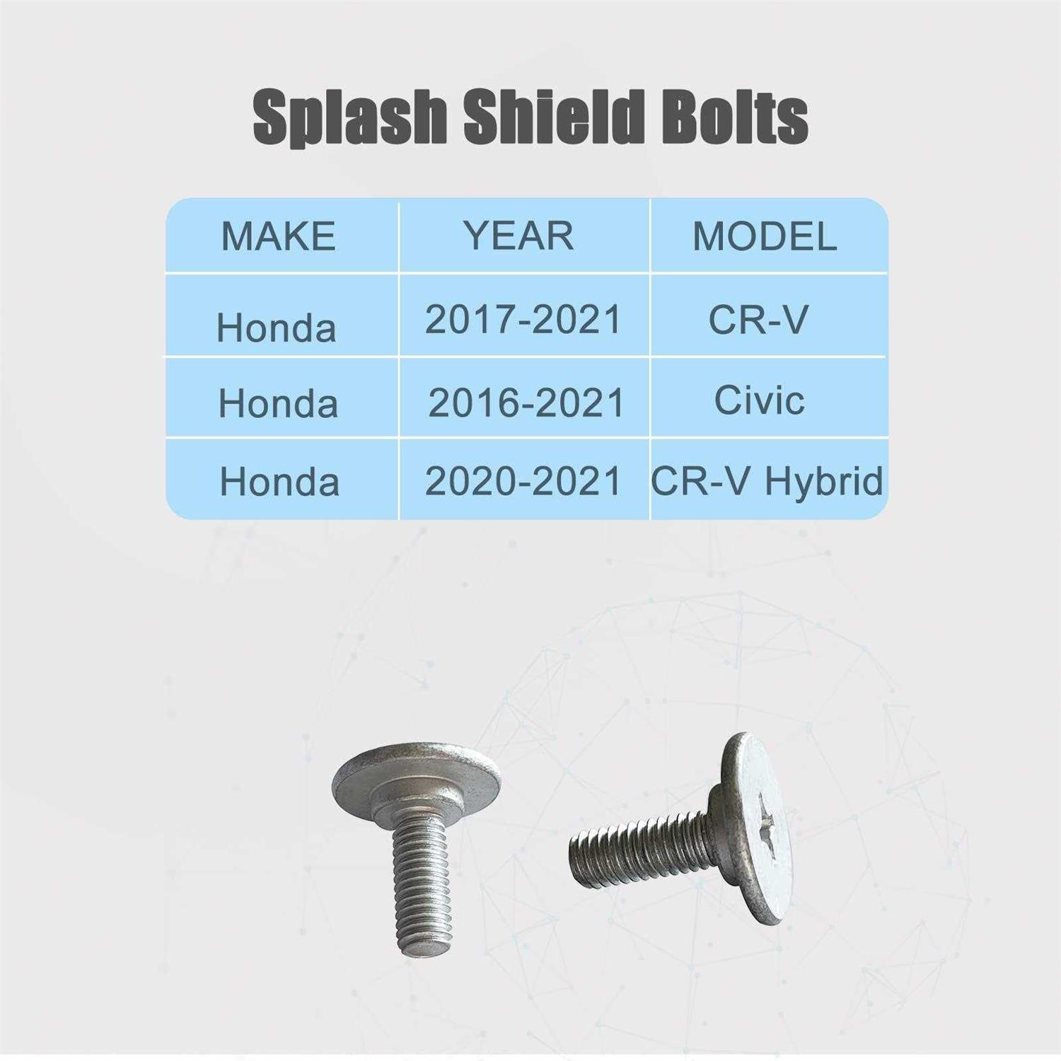 Lower Engine Cover Pin Screws Bolts Splash Shield Hardware Compatible with Honda Accord Civic CR-V Acura 90674-TY2-A01 90105-TBA-A00