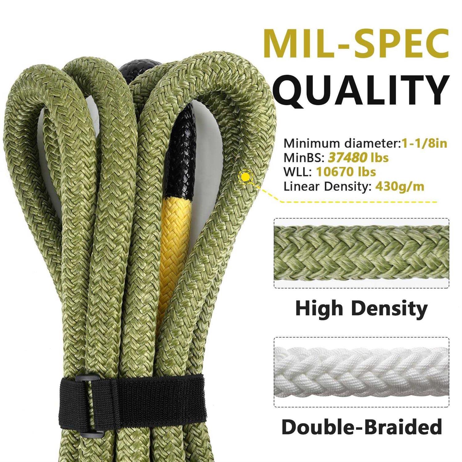 NTR 1-1/8 x 30′ Kinetic Recovery Tow Rope with 2 UHMWPE Soft Shackles