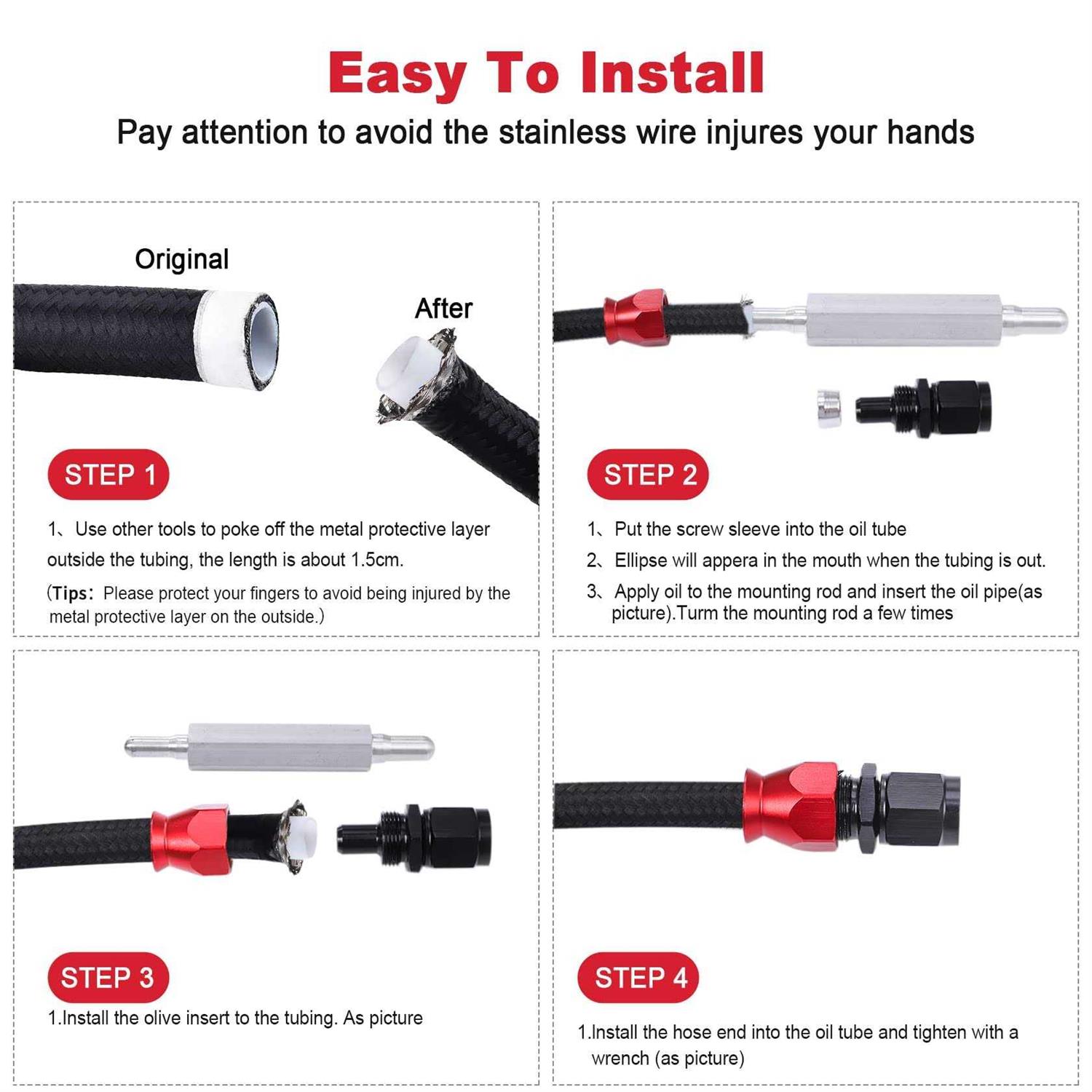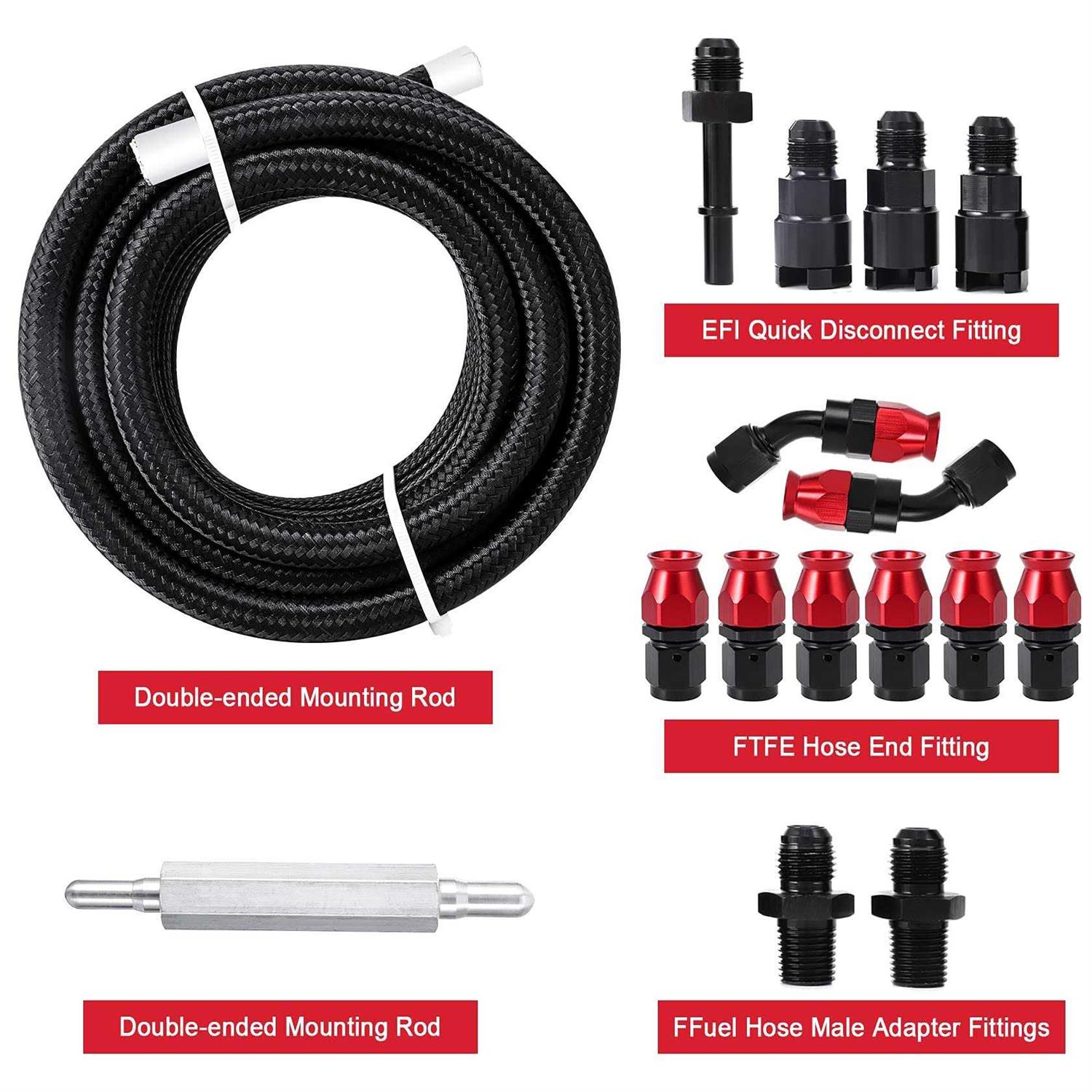 Pilida 25ft Ptfe Fuel Line Kit 6an 3/8 Fuel Hose Efi Ls Fuel Injection Line E85 Oil Gas Hose Fitting Kit Nylon Stainless Steel