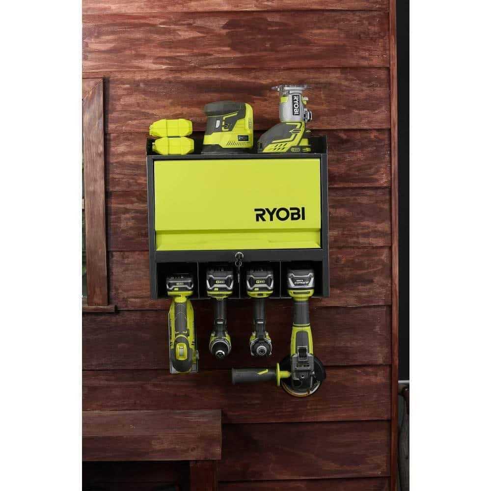 RYOBI Steel 2-Shelf Wall Mounted Garage Cabinet in Black