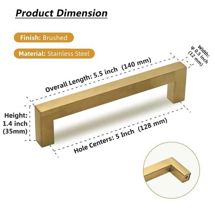 Modern Cabinet Handles Brushed Brass Kitchen Square Drawer Pulls