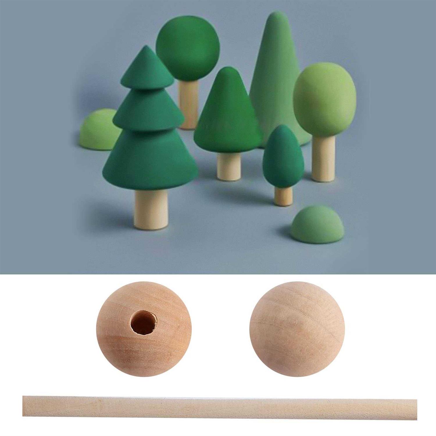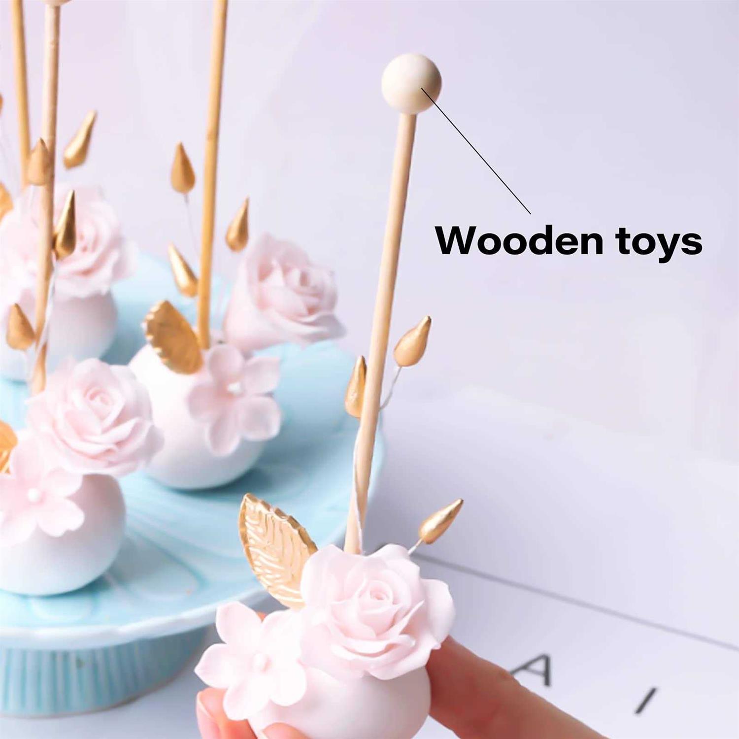 25PCS Wooden Dowel Rods and 25PCS Dowel Caps, 1/4 Diameter x 12 Length Cake Dowel Rods Wooden Lollipops and 1 Diameter with 1/4 Hole Wood Dowel