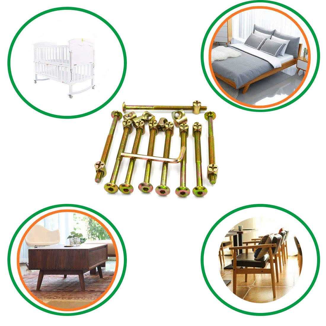 Socell M6 x Zinc Plated Hex Drive Socket Cap Furniture Barrel Screws Bolt Nuts Assortment Kit for Furniture Cots Beds Crib Hardware Screws
