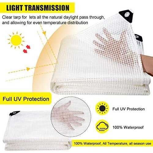 Doniks Clear Greenhouse Heavy Duty tarp 14 Mil Clear Waterproof Cover,UV Resistant Poly tarp with Grommets Superior Strength,for Gardening