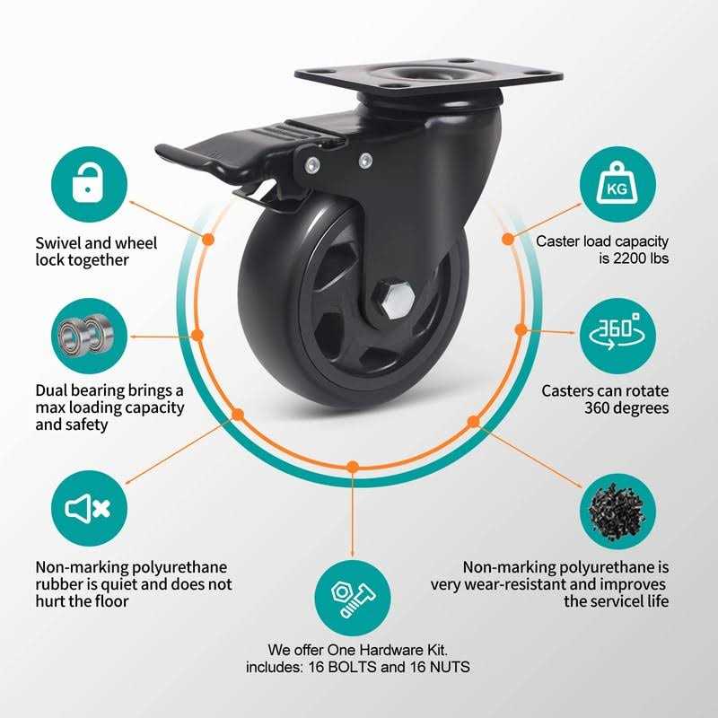 YAEMIKY 5 Inch Caster Wheels with Brake 2200lbs,Heavy Duty Casters Set Of 4,Swivel Plate Casters with Double Ball Bearings,Premi