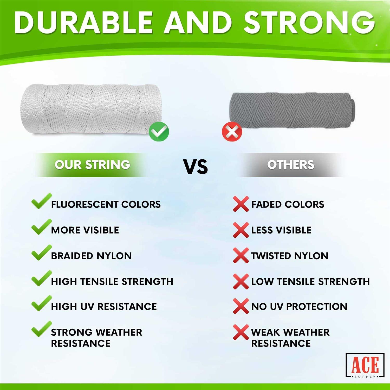 Ace Supply White Mason Line String Line #18 Braided Nylon String