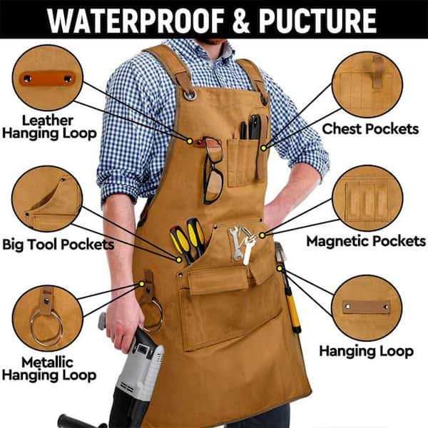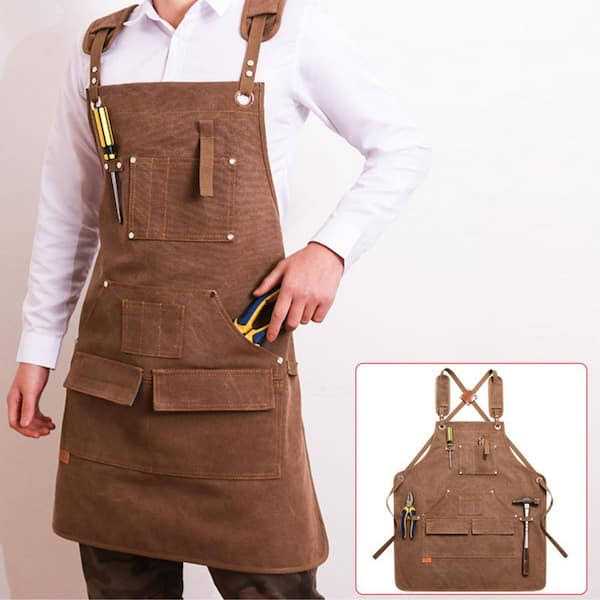 Afoxsos Work Apron Grilling Apron w/Pockets Unisex Canvas Adjustable Cross-Back Strap For Carpenter Painting Home BBQ