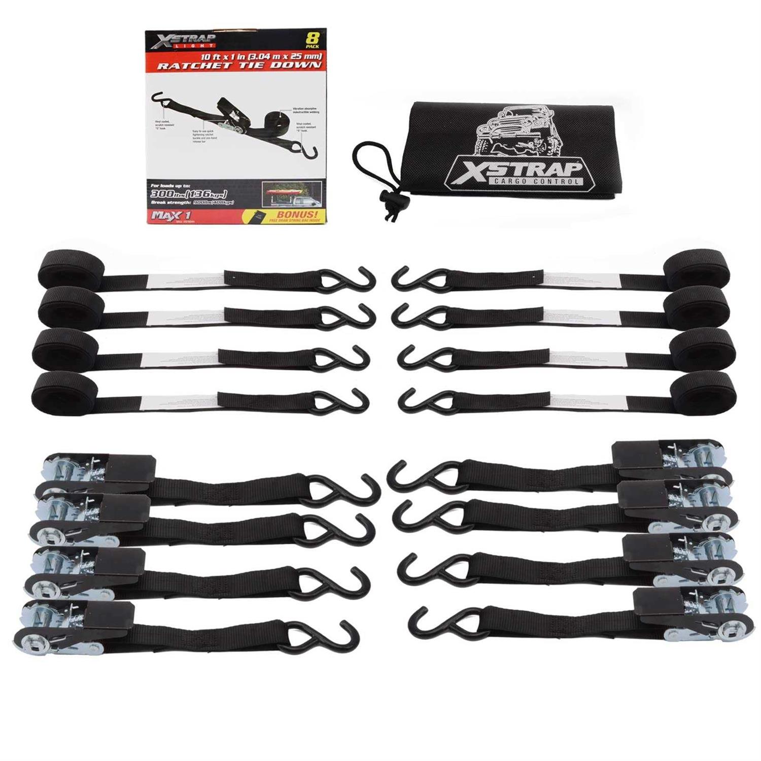 Xstrap Standard Ratchet Tie Down Straps 8PK 1” x 10 ft