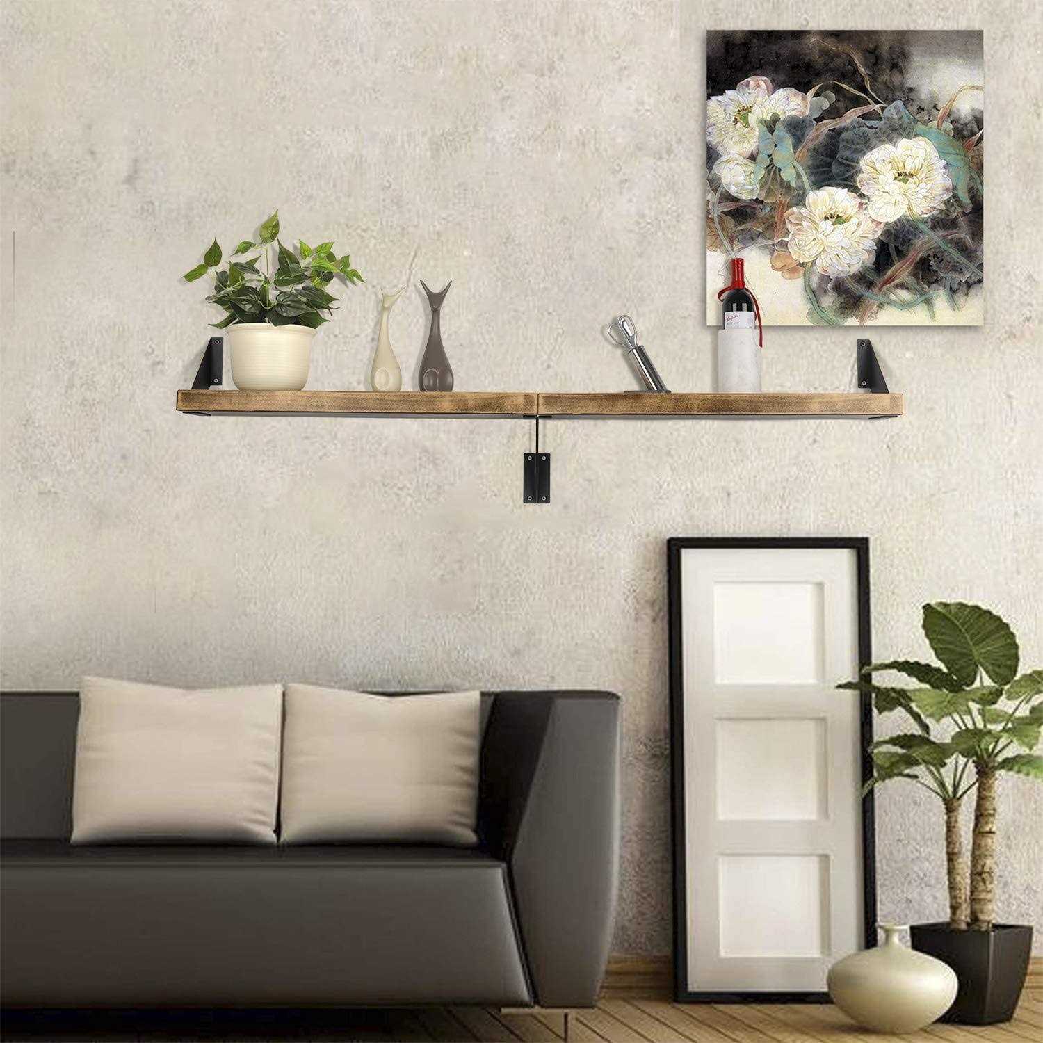 FOYO Iron Shelf Brackets Flat Angle Curved Black Floating Industrial Shelves Support Brackets