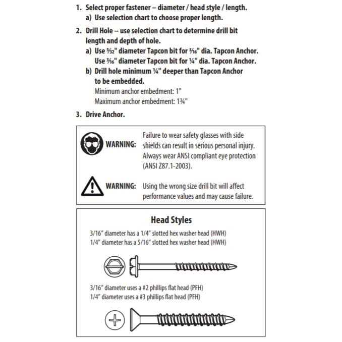 Tapcon 1/4 x 2-1/4 Star Torx Head Concrete Anchor Screws 3187407v2