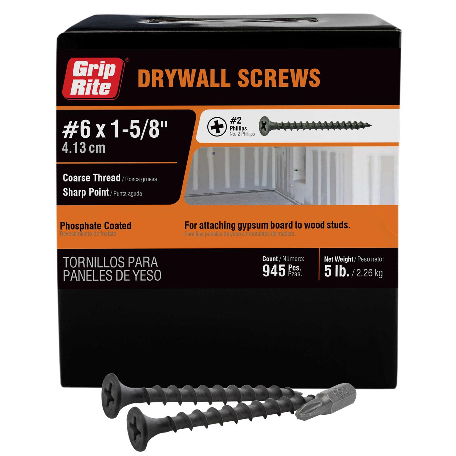 Grip-Rite #6 x 1-5/8-in Bugle Coarse Thread Drywall Screws 158CDWS5