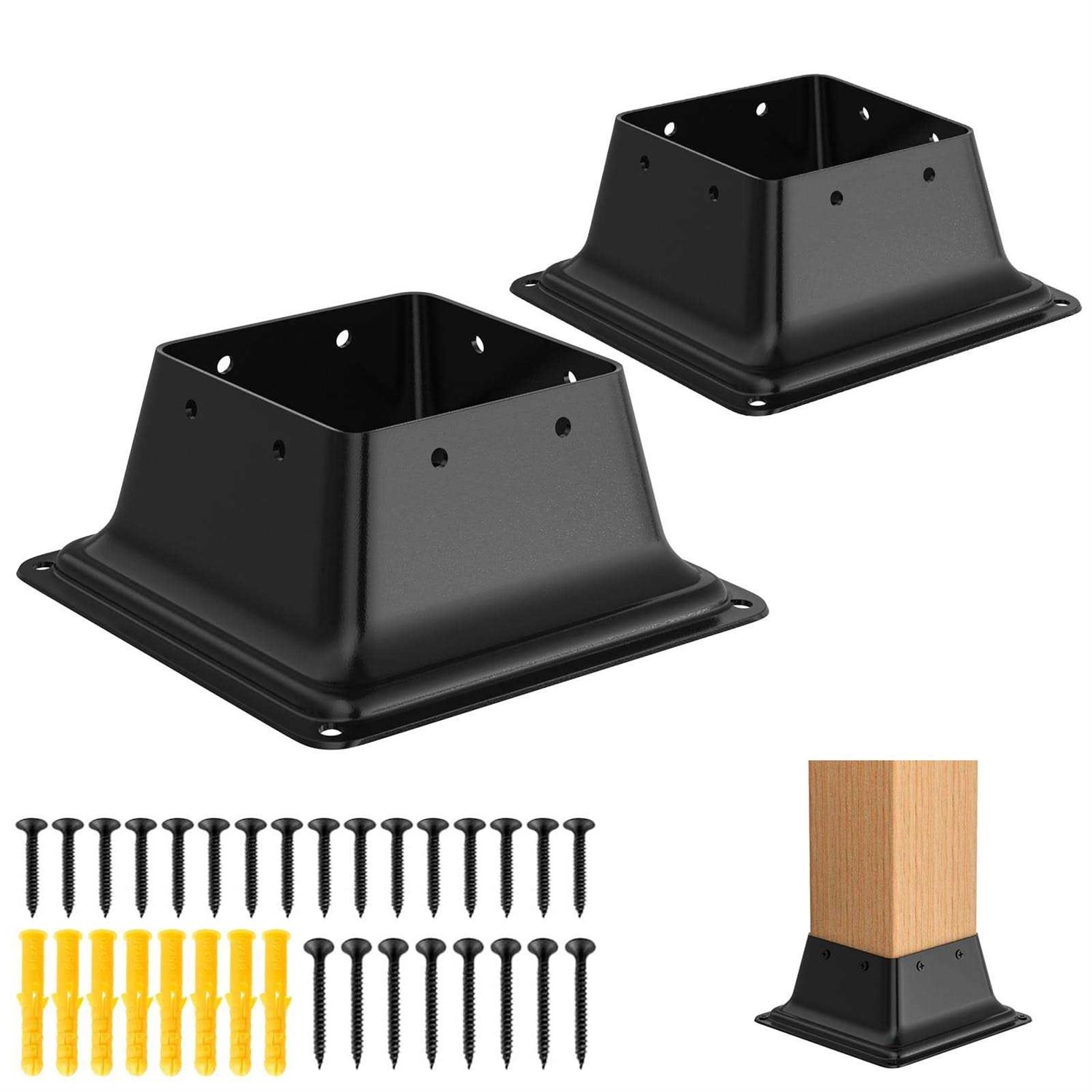 FMhotu 4×4 Post Base 2Pcs Internal 3.5×3.5 Heavy Duty Powder-Coated Steel Post Bracket Fit for 4×4 Standard Wood Post Anchor