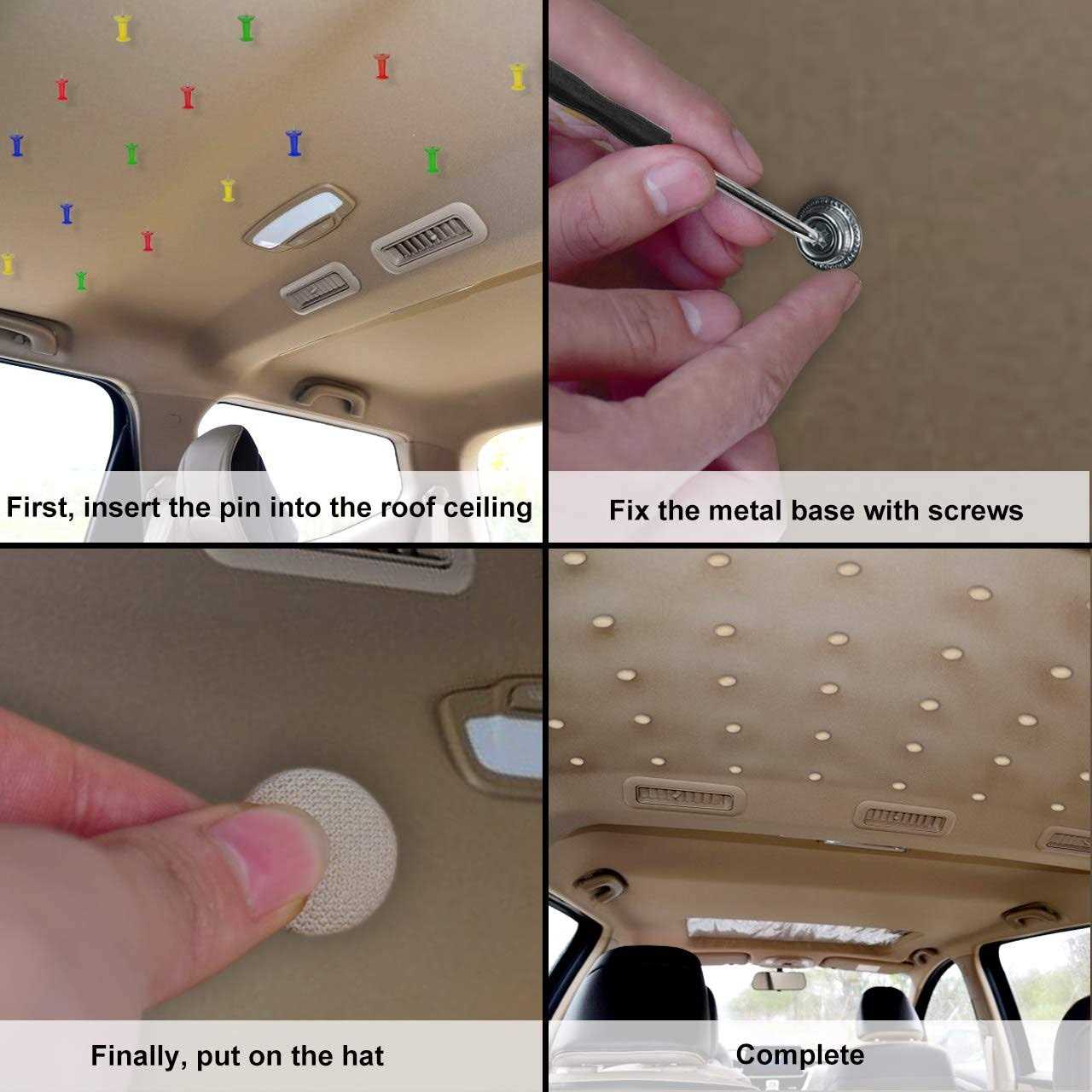 Niteguy 70pcs Car Roof Headliner Repair Button, Auto Roof Snap Rivets Retainer Design for Car Roof Flannelette Fixed,with Installation Tool and Fit