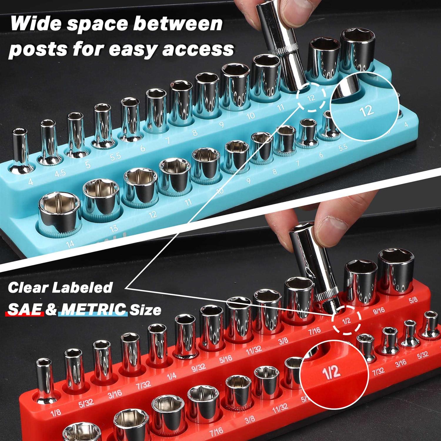 Shall Magnetic Socket Organizer Set 2-Piece SAE & Metric Socket Holders Shall Magnetic Socket Organizer Set 2-Piece SAE & Metric Socket Holders