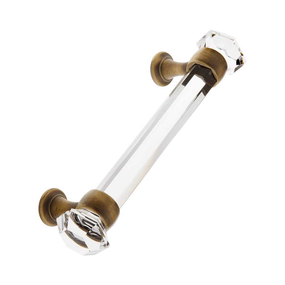 4 on Center Hexagonal Cut Glass Handle with Solid Brass Bases