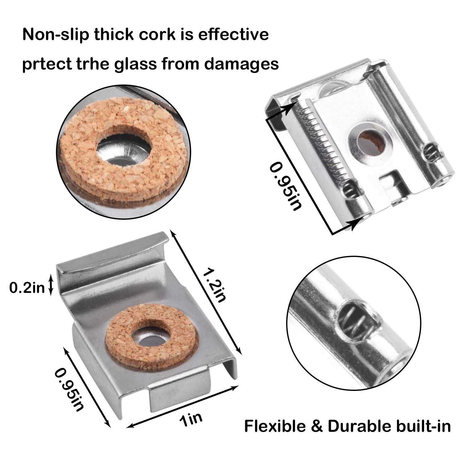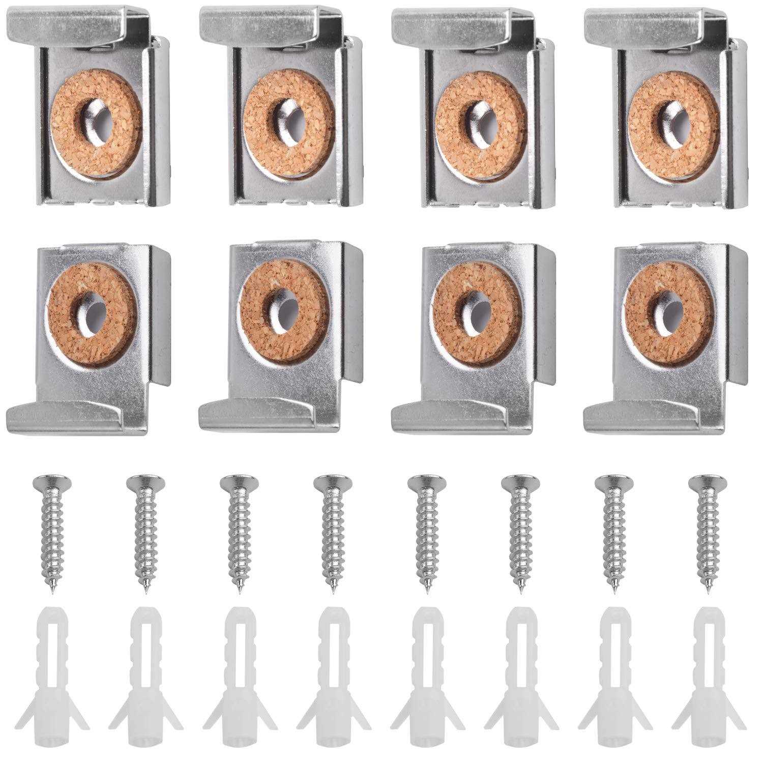 Mirror Hanger Clips Set, 2 Sets Unframed Mirror Mount Clips, Metal Spring Loaded Mirror Hanger Clips with Screws and Rawl Plugs