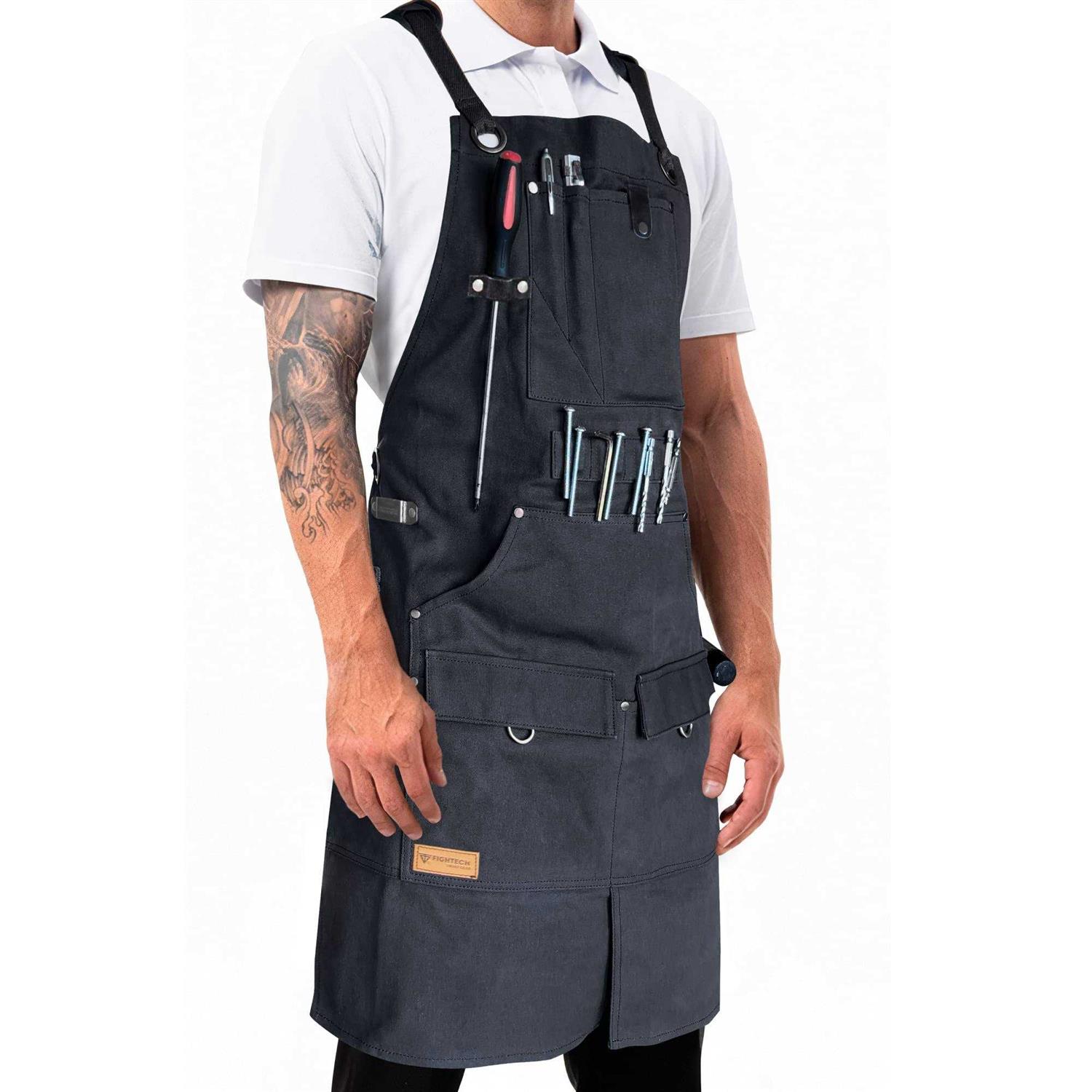 FIGHTECH Waxed Canvas Apron with Tool Pockets Work Apron w Kevlar Stitching