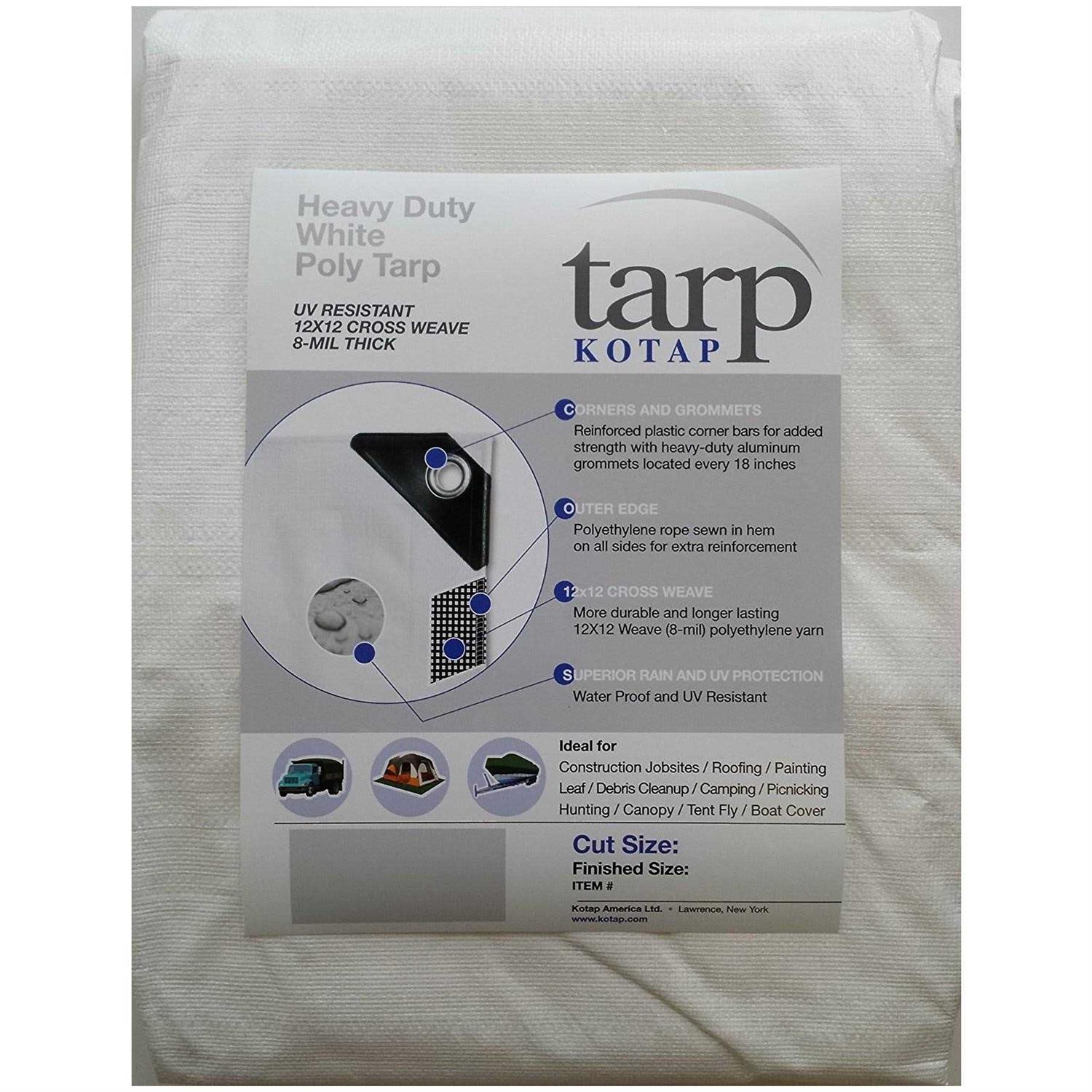 Kotap 12-ft x 25-ft Heavy-Duty 12 by 12 Cross Weave 8-mil White Poly Tarp