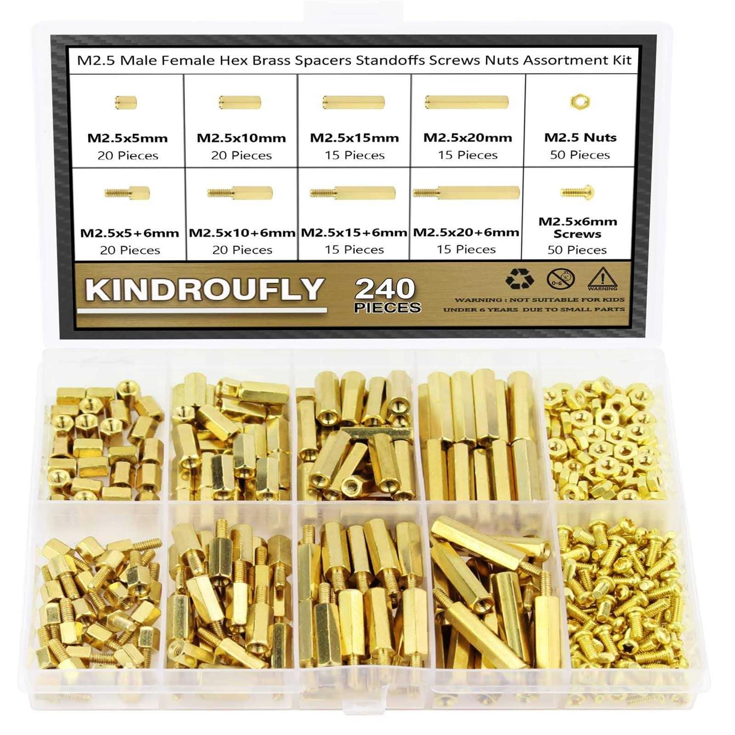 Kindroufly 240 Pieces M2.5 Male Female Hex Brass Standoffs Spacers Screws Nuts Kit
