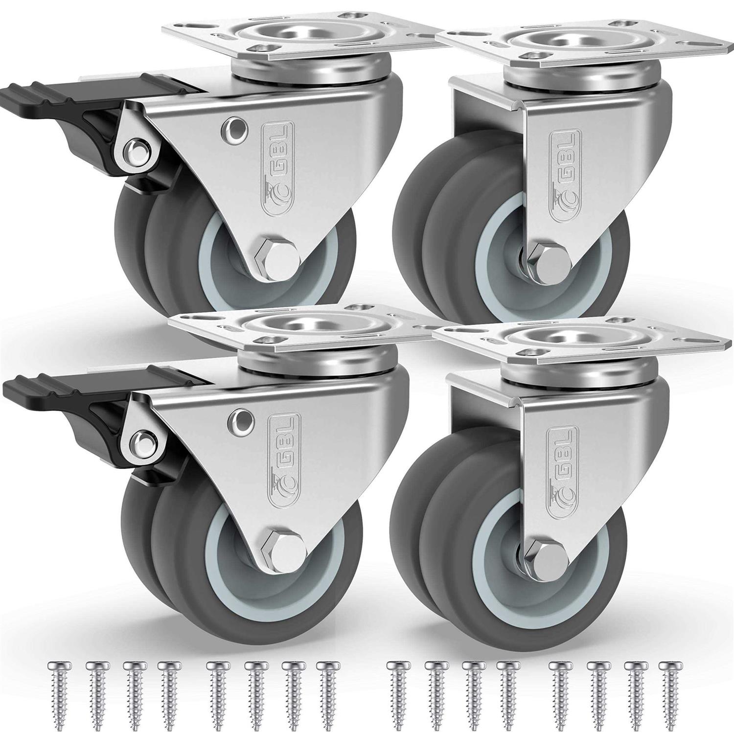 GBL 2 Heavy Duty Caster Wheels with 2 Brakes + Screws up to 880Lbs